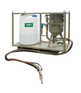 Dieses kompakte Strahlystem beinhaltet alle Geräte, die zum Strahlen benötigt werden. Durch seine Größe und die Montage auf einem Rollwagen ist es zudem sehr mobil und flexibel.